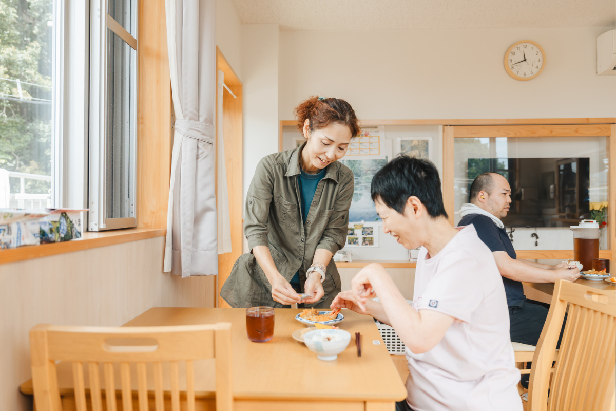 2025年4月、こうち福祉会は高知県で初めて、強度行動障害のある方に特化した「日中サービス支援型のグループホーム ライフ・タウン 群青の風」を開所しました。このホームでは、職員が24時間体制で常駐し、利用者さん一人ひとりの生活に寄り添いながら日々の支援を行っています。食事や入浴、外出のサポートはもちろん、穏やかに安心して暮らせるよう、日常の小さな変化にも丁寧に向き合います。