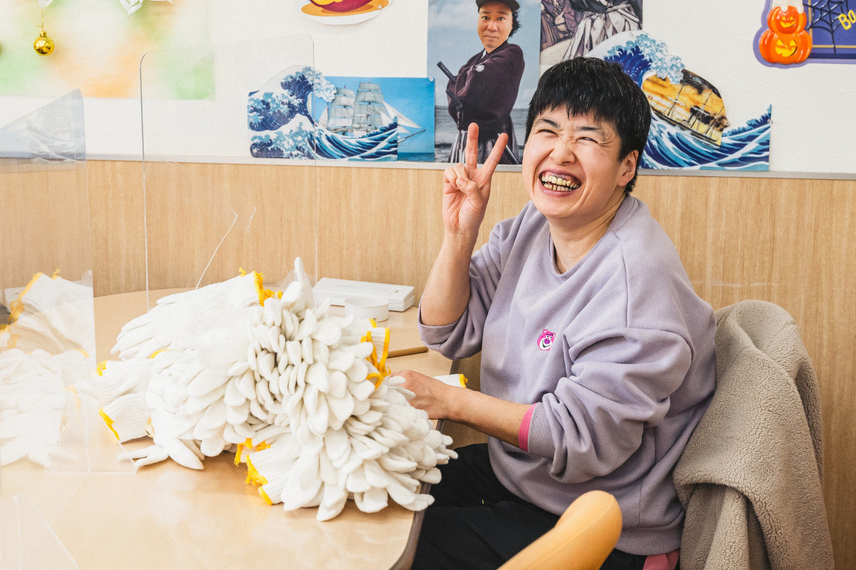 手袋製造や食品加工、農作業などを通して、利用者さんの「働く力」を一緒に育てるお仕事です。作業のサポートや声かけを行いながら、達成感や喜びを共有し、安心して働ける環境をつくります。